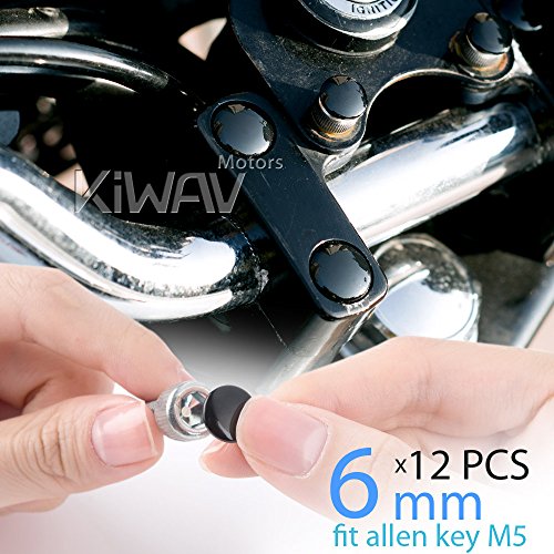 KiWAV motorcycle round bolt cap screw cover plug black for 6mm thread allen head bolts, ie M5 allen key