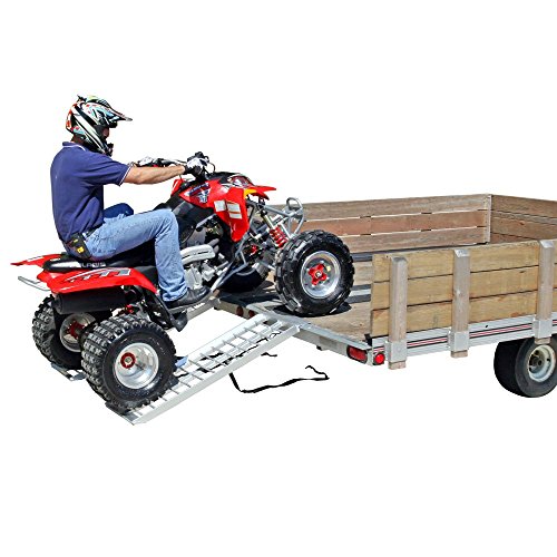 Straight aluminum loading ramps help load ATVs, garden equipment, lawn mowers, golf carts, UTVs, and other off-road or utility equipment weighing up to 2,000 lbs. into trailers for transport. Features raised edges to keep vehicles in line and on the ramps. Includes (2) safety straps to prevent ramp kick-outs during loading. Made with 6061-T6 heavy duty aluminum built to last.