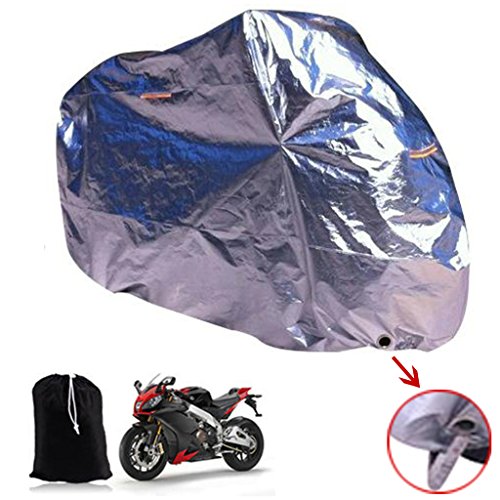 Jade Onlines Aluminum Foil Reflective Fabric Motorcycle Waterproof Outdoor Rain Cover with Front Keyhole and Windproof Buckle (Silver XXXL)