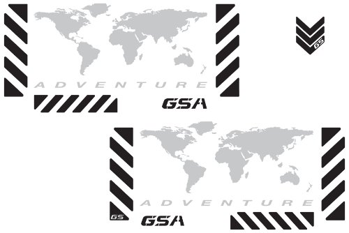 The Pixel Hut gs00029b BMW GSA Adventure Motorcycle Decal Kit "World Adventure Map" for Touratech Panniers - Black Reflective / Silver