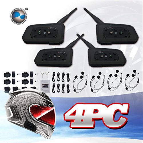 LEXIN® 4x Waterproof Bluetooth Intercom System for Motorcycles/Motorbikes - Connect Up to 6 Riders At Max 1000 M Distance - 2-Way Radio Helmet Headset - Connects to Bluetooth Mobile Phones and MP3 Players